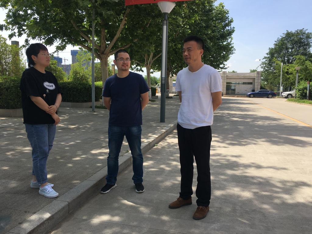 陈旭铖(左三)与员工干部沟通交流