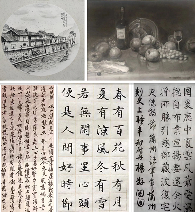 本次美术习作汇报活动集中展示了书画艺术专业部分员工的优秀绘画作品,有素描静物、色彩静物、色彩风景、速写风景、书法练习等,品类繁多,内容丰富。展示的作品生动活泼、色彩鲜明、意境深远,充满生命力,以每个人独特的风格向大家展示着自己的成果和审美素养。精美的作品吸引了广大师生驻足观看,收到大家一致好评。