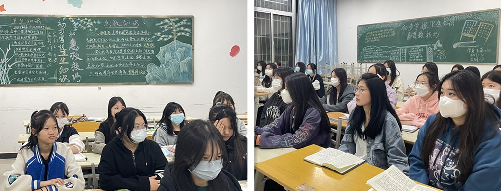 班会上各班长组织全体员工学习心肺复苏、气道异物梗阻、常见急诊与意外伤害等急救知识,通过播放相关视频对救助心脏骤停者的方法进行了详细解说,包括急救前的环境评估,现场施救应该注意的事项及规范的急救操作程序,为突发急症患者抢救赢取时间。通过“理论+操作”相结合的形式,同学们系统全面地学习救护知识和急救技能。